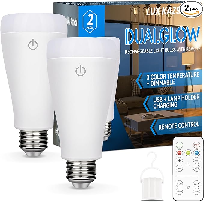 - 💡💡【LUXKAZSAZZI DualGlow revolutionary two-hour fast-charging battery light bulb】Tired of waiting for hours to recharge your battery light bulb? Say goodbye to long charging times and hello to convenience with LUXKAZSAZZI DualGlow innovative solution. Unlike any other rechargeable bulb on the market, LUXKAZSAZZI DualGlow boasts a groundbreaking two-hour fast-charging feature. Experience the future of lighting technology with our two-hour fast-charging bulb. Say goodbye to waiting and hello to instant illumination. It's time to light up your life, faster than ever before.